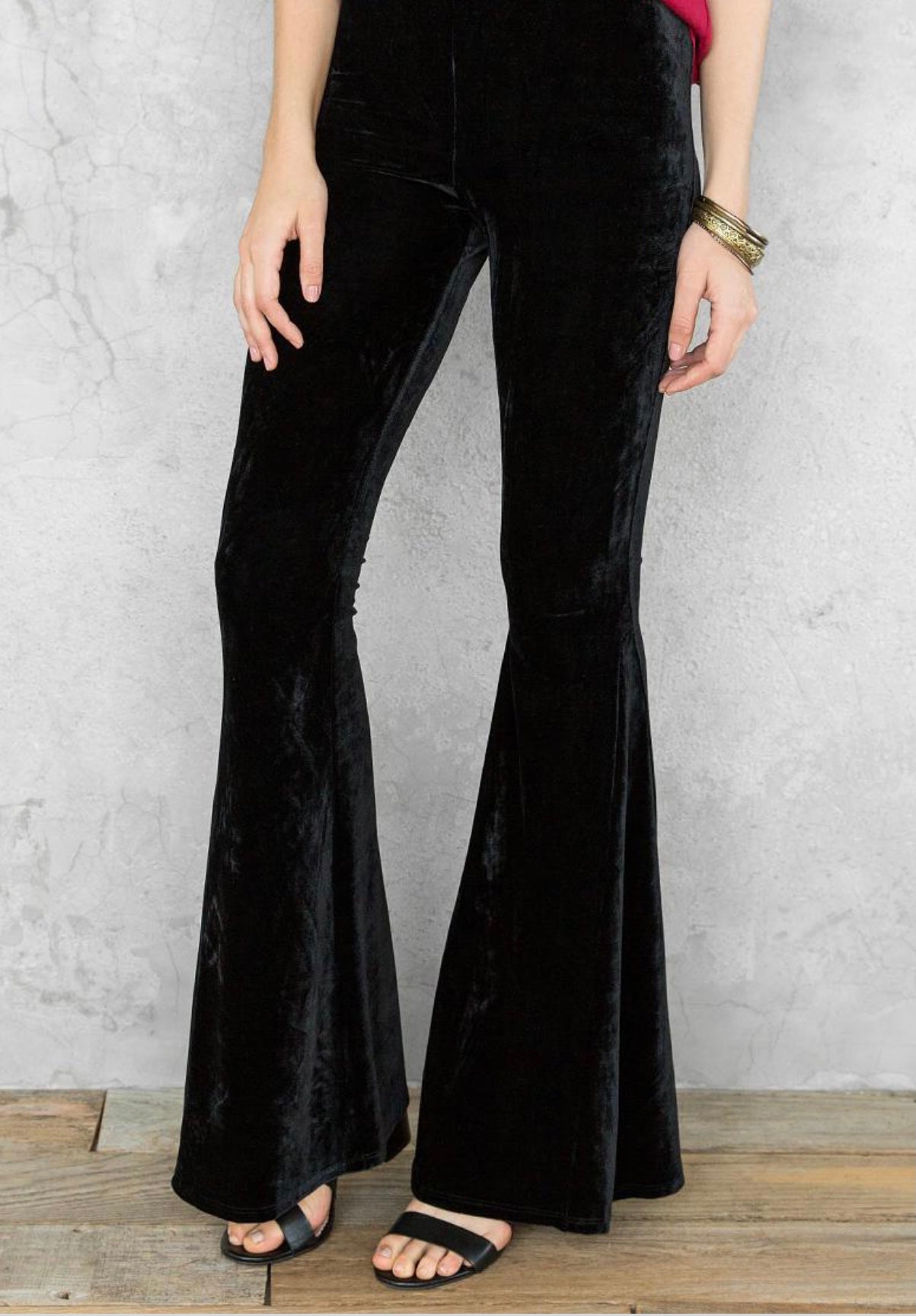 If you are looking for more feminine and eye-catching ideas, then add this black velvet bell bottom pants to your favorite