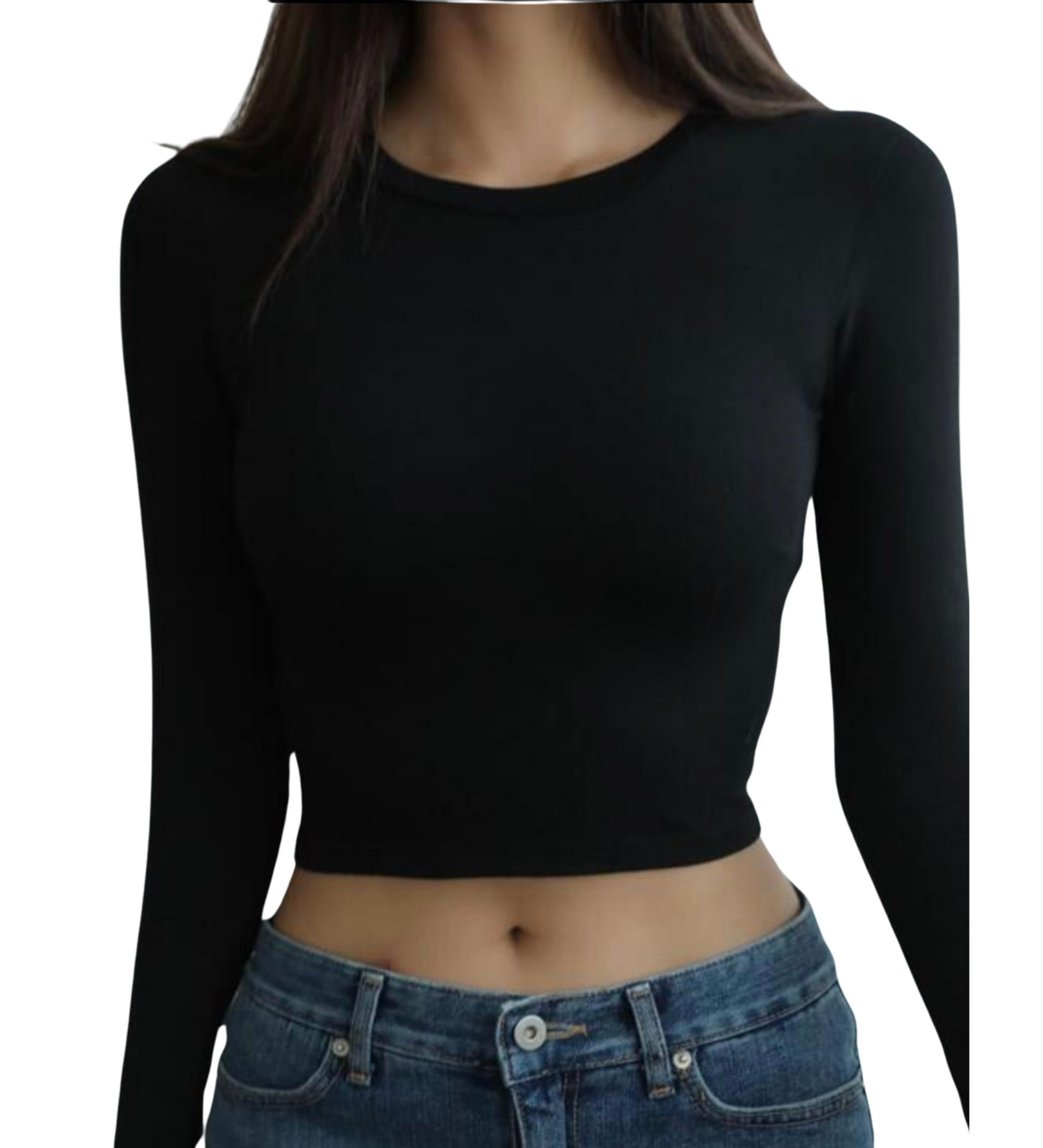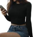 Women Crop Tops Cotton Long Sleeves Crop Top Boatneck Crop Top Tee Knit Long Sleeves T-Shirt Blouses.