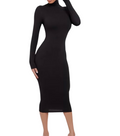 Women Long Dress Fitted Midi Dress High Neck Pencil Dress Turtleneck Midi Dress Phoebe Dress Cotton Bodycon Long Maxi Dress