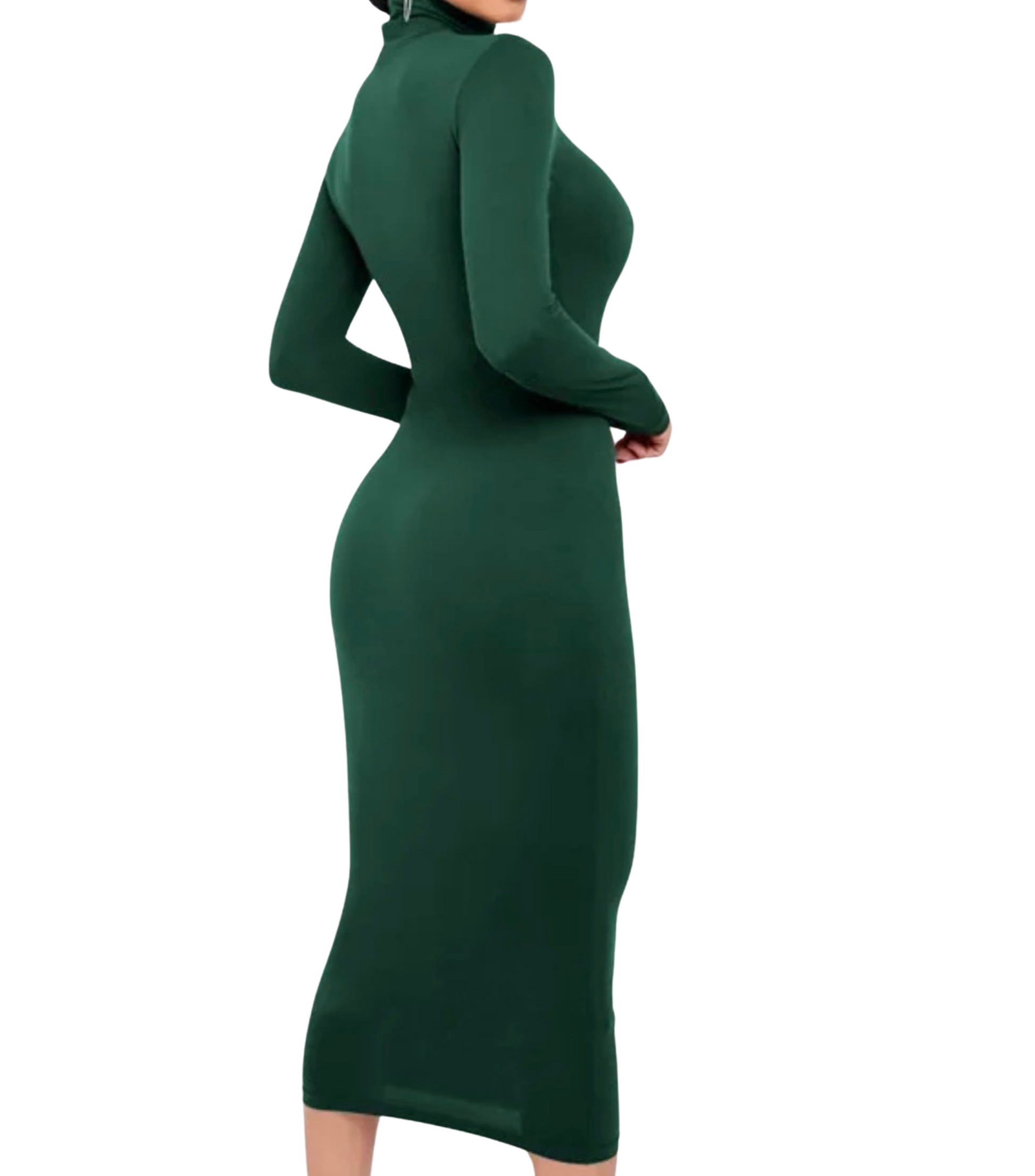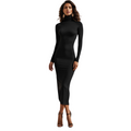 Crafted with meticulous attention to detail, the dress features a form-fitting bodycon silhouette that effortlessly contours to your curves, highlighting your natural grace and confidence. The turtleneck design adds an air of elegance while keeping you warm during cooler seasons, making it a versatile choice for day-to-night transitions.